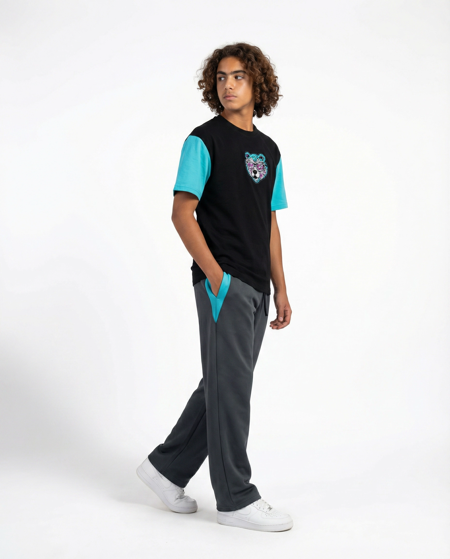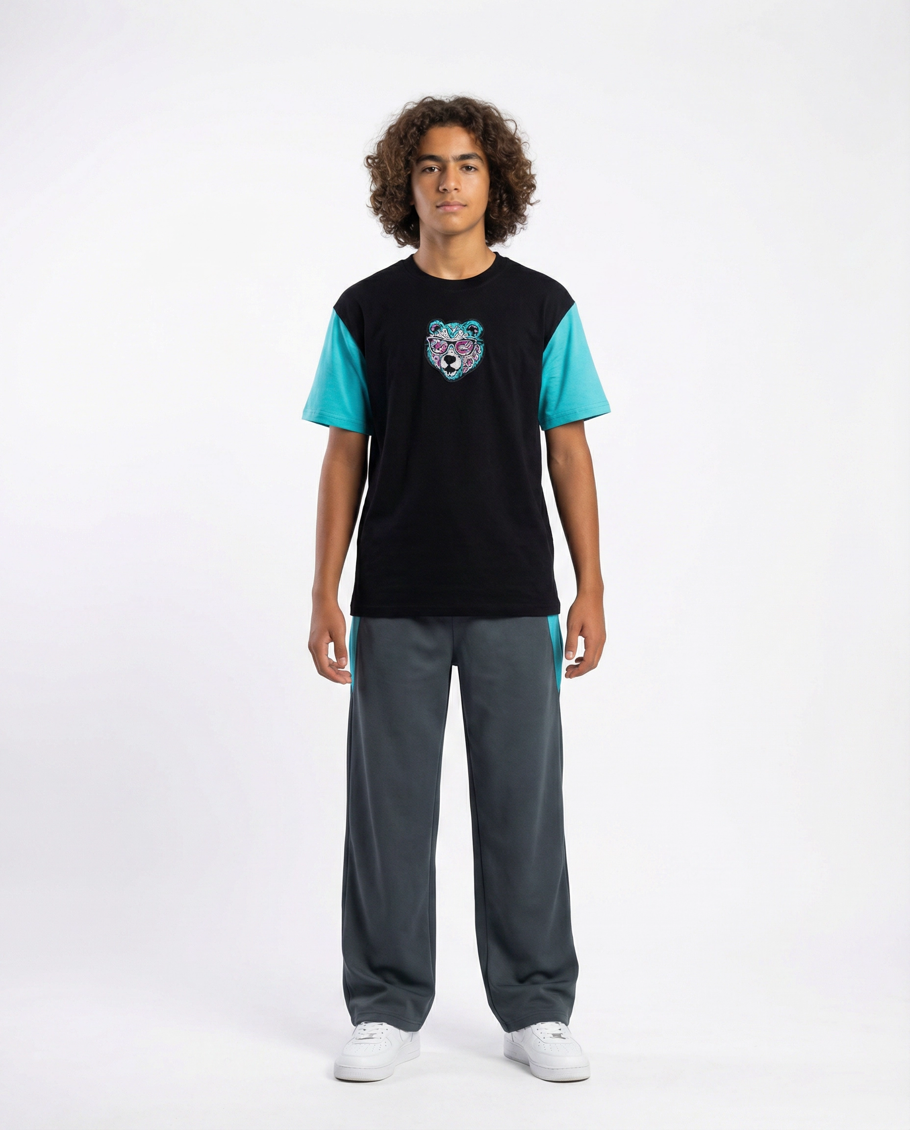 هذا المنتج مصنوع من خامة قطنية مريحة وعملية للأطفال.
