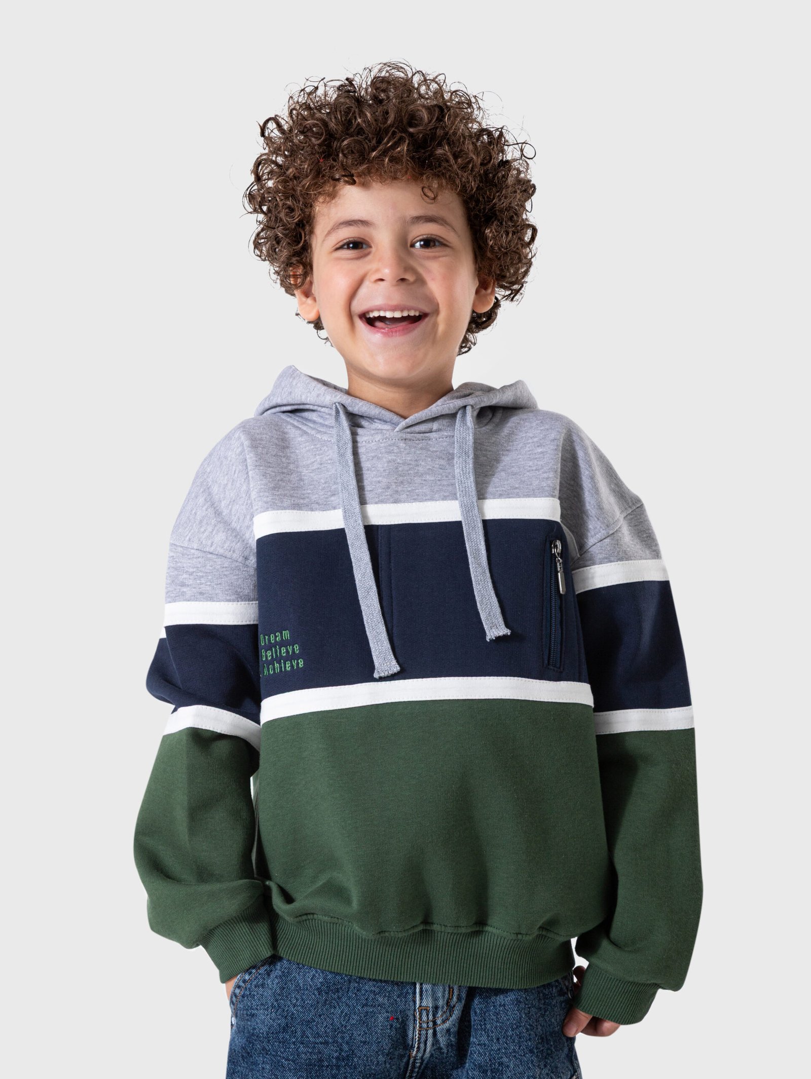 سويت شيرت أولادي من قماش الميلتون القطني الفاخر، بتشطيب احترافي يناسب لبس الخروج والمدرسة، مصمم ليناسب عمر 3–4–5، يتميّز بملمس داخلي ناعم يحافظ على دفء الطفل بدون إحساس بالثقل، ولذلك يعتبر اختيارًا مثاليًا للبس اليومي في الشتاء والأجواء الباردة.