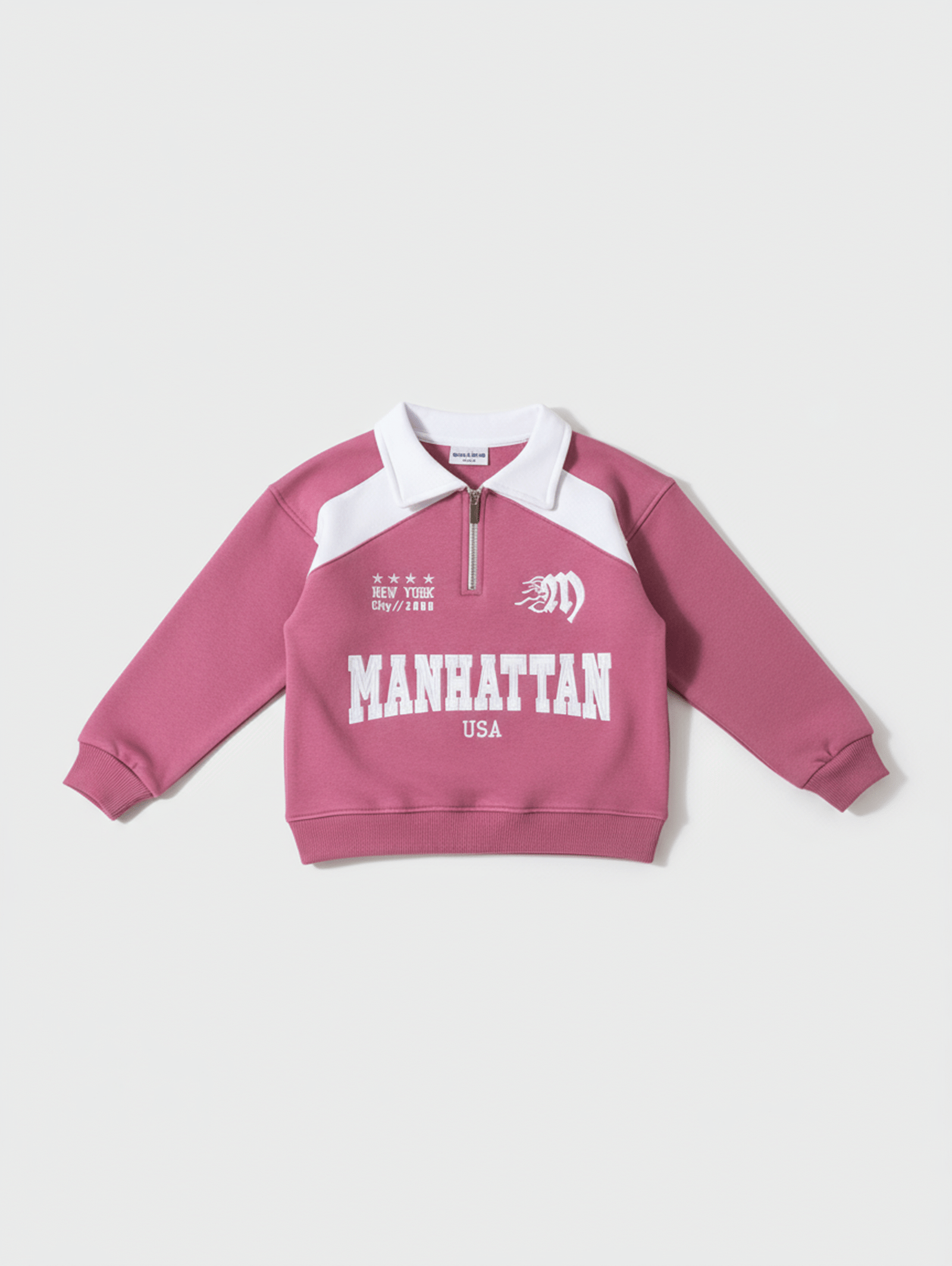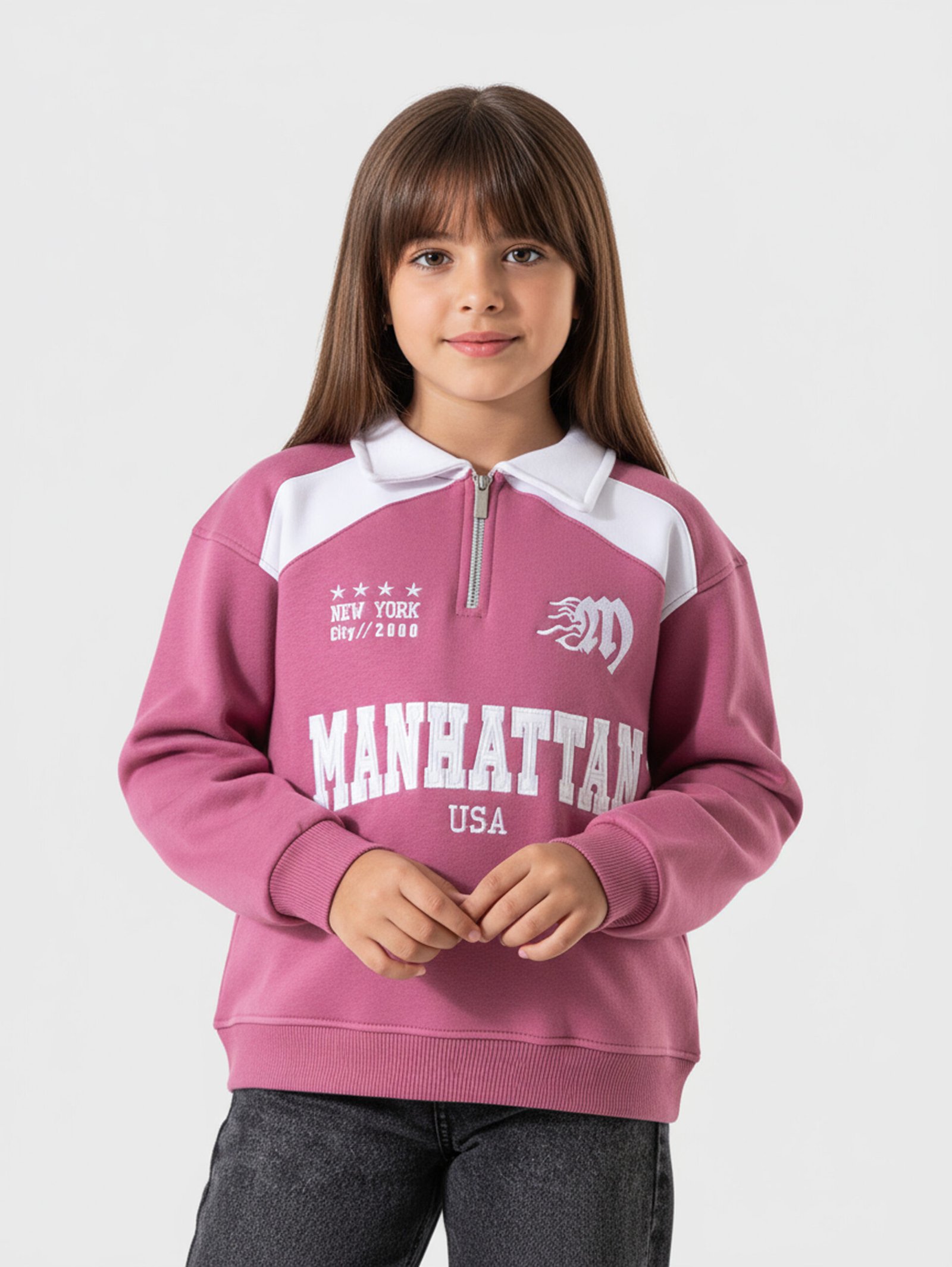 سويت شيرت بناتي من قماش الميلتون القطني الفاخر، بتشطيب احترافي يناسب لبس الخروج والمدرسة، مصمم ليناسب عمر 6–8–10، يتميّز بملمس داخلي ناعم يحافظ على دفء الطفل بدون إحساس بالثقل، ولذلك يعتبر اختيارًا مثاليًا للبس اليومي في الشتاء والأجواء الباردة.