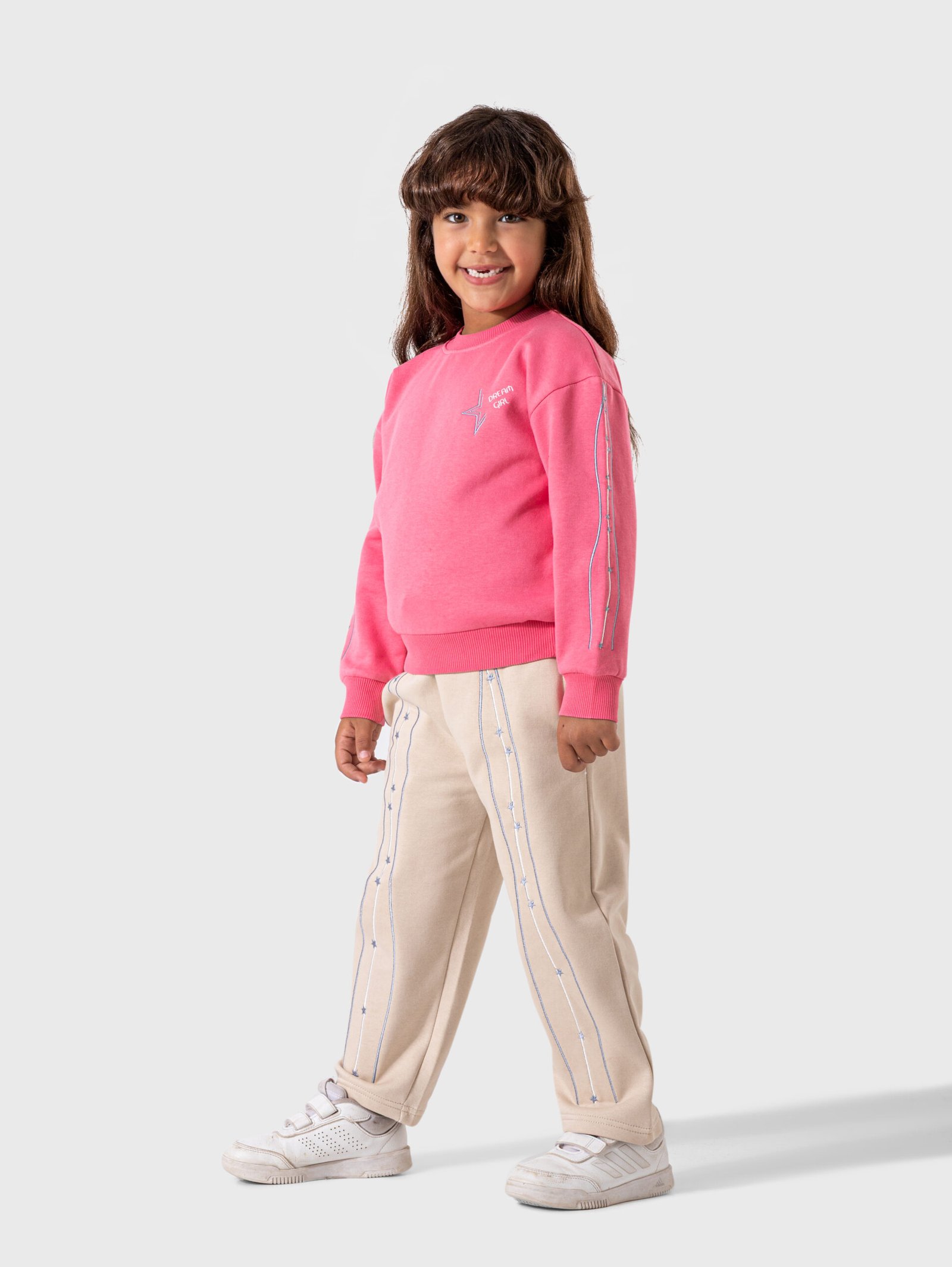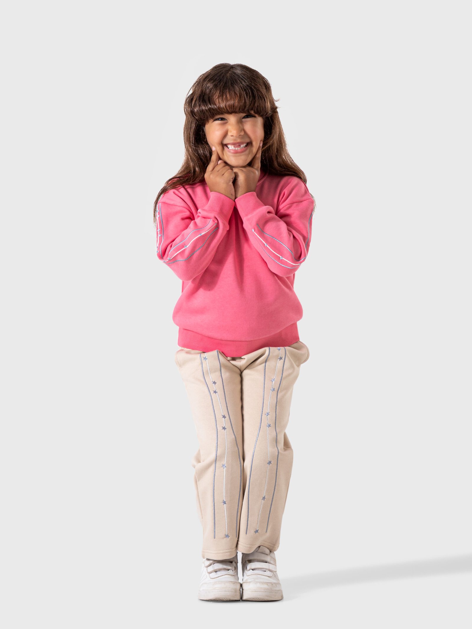 طقم الشتاء بناتي من قماش الميلتون القطني عالي الجودة، مناسب لعمر 3–4–5، يتميّز بملمس داخلي ناعم يمنح دفئًا مريحًا، ولذلك يعتبر اختيارًا عمليًا وأنيقًا للخروج والاستخدام اليومي في الأجواء الباردة.