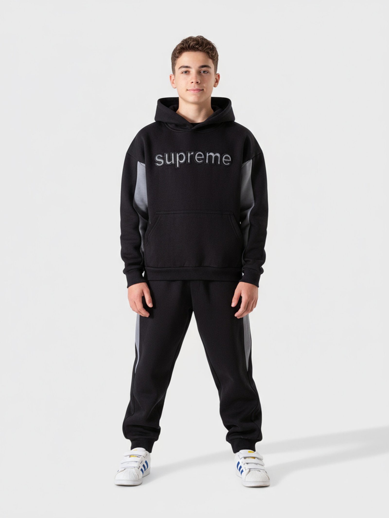 طقم الشتاء أولادي من قماش الميلتون القطني عالي الجودة، مناسب لعمر 12–14–16، يتميّز بملمس داخلي ناعم يمنح دفئًا مريحًا، ولذلك يعتبر اختيارًا عمليًا وأنيقًا للخروج والاستخدام اليومي في الأجواء الباردة.